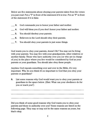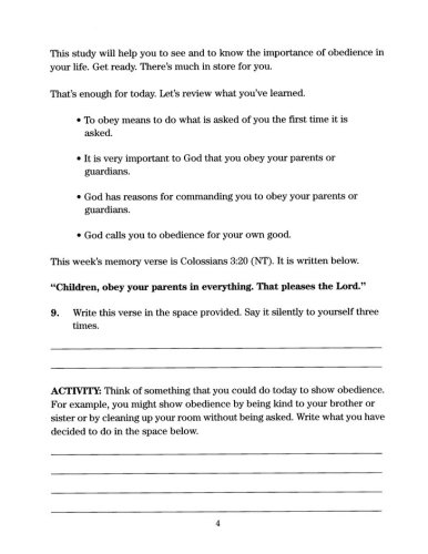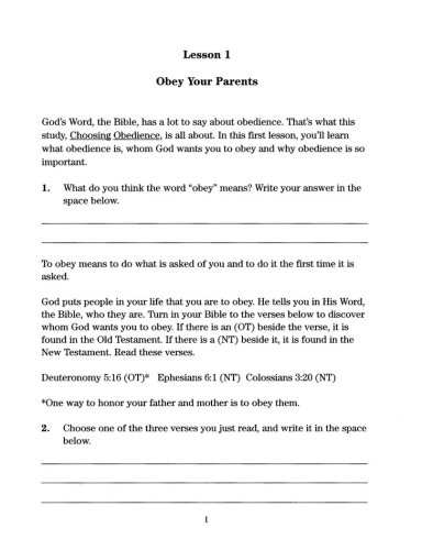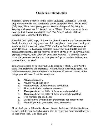 Throughout the study, Choosing Obedience, the child will learn the following: