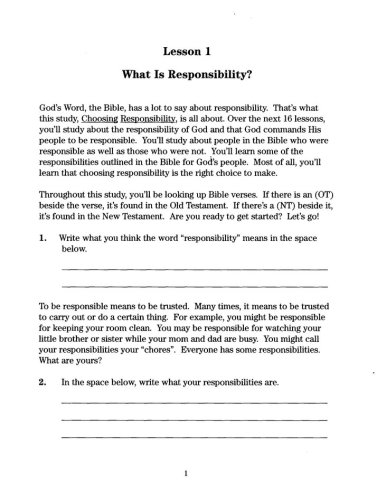 What Responsibility IsGod is ResponsibleGod Wants You to Be ResponsibleBeing Responsible is Hard WorkGod is a WorkerExamples from the Bible of Those Who Were ResponsibleExamples from the Bible of Those Who Were Not ResponsibleThe Responsibilities of the Believer in Christ