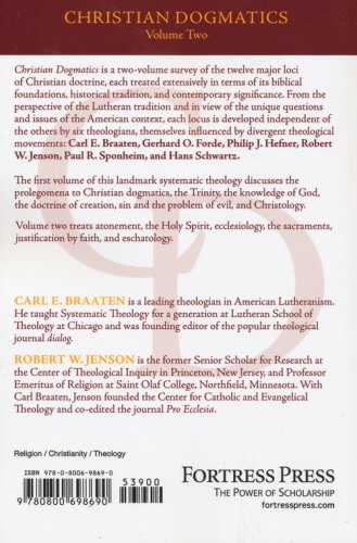 Christian Dogmatics is a two-volume survey of the twelve major loci of Christian doctrine, each treated extensively in terms of its biblical foundations, historical tradition, and contemporary significance. From the perspective of the Lutheran tradition and in view of the unique questions and issues of the American context, each locus is developed independent of the others by six theologians, themselves influenced by divergent theological movements: Carl Braaten, Gerhard Forde, Philip Hefner, Robert Jenson, Paul Sponheim, and Hans Schwartz. Volume 1 discusses dogmatics, the Trinity, the identity of God, creation, sin, and Christology. Volume 2 treats atonement, the Holy Spirit, ecclesiology, the sacraments, justification by faith, and eschatology.