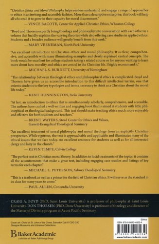 Christian Ethics and Moral Philosophy is an introductory textbook that presents Christian philosophical and theological approaches to ethics. Combining their expertise in philosophy and theology, Craig A. Boyd and Don Thorsen explain the beliefs, values, and practices of various Christian ethical viewpoints, addressing biblical teachings as well as traditional ethical theories that contribute to informed moral decision-making. Each chapter begins with Words to Watch and includes a relevant case study on a vexing ethical issue, such as caring for the environment, human sexuality, abortion, capital punishment, war, and euthanasia. End-of-chapter reflection questions, illustrations, and additional information tables are also included.