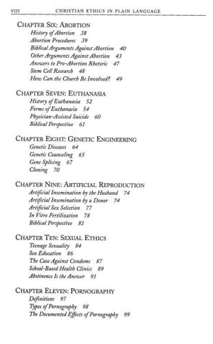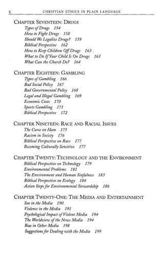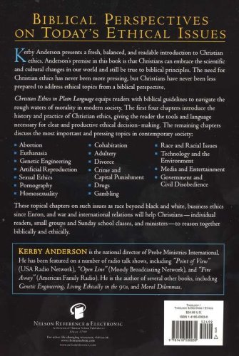 This book provides a comprehensive introduction to Christian ethics, suitable for individual study or textbook use in a Bible college or seminary. The first four chapters survey of the field of Christian ethics before focusing on specific issues. Eighteen chapters confront all of the issues faced by believers today, including a discussion of racial issues that goes beyond black and white, business ethics on this side of Enron, and war and international relations in light of today's headlines.