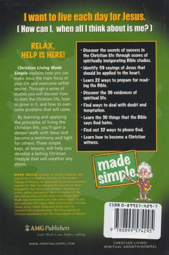Christian Living Made Simple explains how you can make Jesus the main focus of your life and overcome selfish desires. Through a series of studies you will discover how to start the Christian life, how to grow in it, and how to overcome problems that will come.