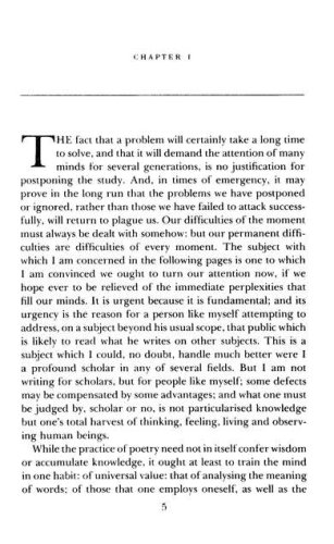 Two long essays: “The Idea of a Christian Society” on the direction of religious thought toward criticism of political and economic systems; and “Notes towards the Definition of Culture” on culture, its meaning, and the dangers threatening the legacy of the Western world.