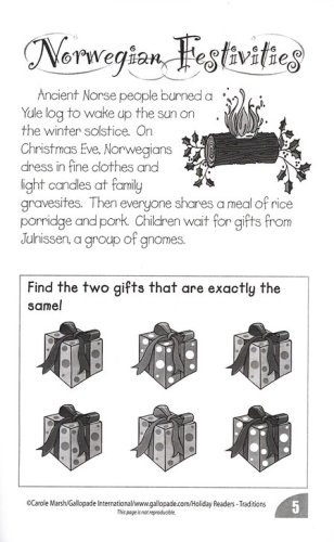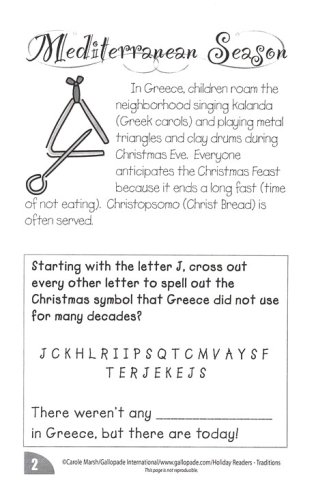 This holiday reader combines Christmas reading and activities that are perfect for a fun school assignment. Written in a clear style, students will learn about the origin of the candy cane, when candy-makers made hard-sugar sticks. Legend has it that the candy cane was invented in 1670 by a choirmaster at the Cologne Cathedral who handed out bent sugar sticks among children to keep them quiet during the long Living Creche ceremony. 12 pages, paperback; Ages 7-11.