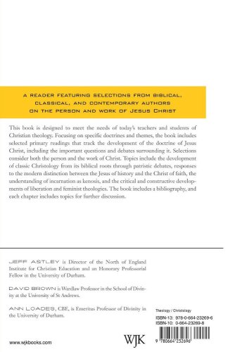 This book is designed to meet the needs of today's teachers and students of Christian theology. Focusing on specific doctrines and themes, the book includes selected primary readings that track the development of the doctrine of Jesus Christ, including the important questions and debates surrounding it. Selections consider both the person and the work of Christ. Topics include the development of classic Christology from its biblical roots through patristic debates, responses to the modern distinction between the Jesus of history and the Christ of faith, the understanding of incarnation as kenosis, and the critical and constructive developments of liberation and feminist theologies. The book includes a bibliography, and each chapter includes topics for further discussion.