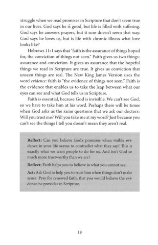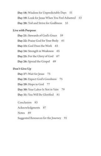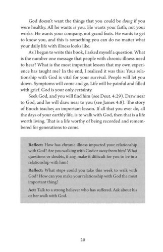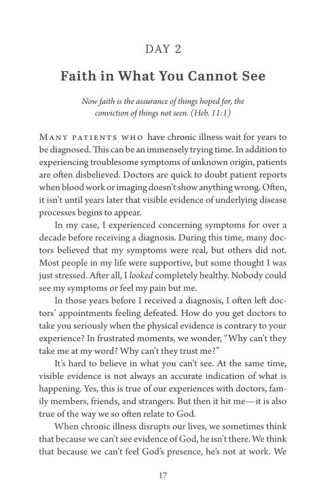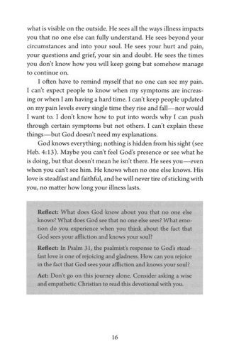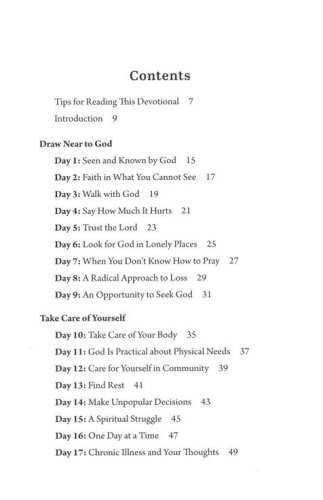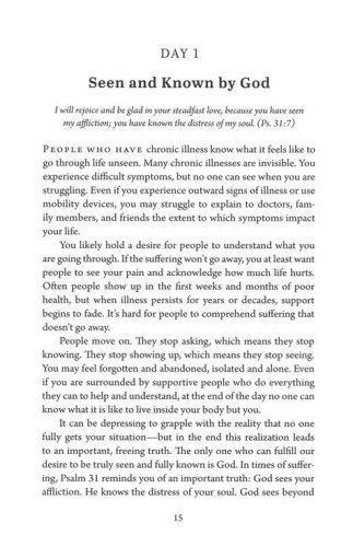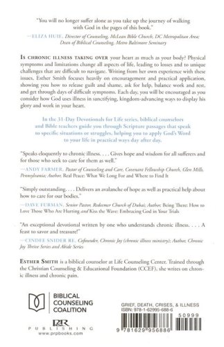 Chronic illness changes all aspects of life, leading to unique challenges that are di,fficult to navigate. Thankfully, God provides his presence, counsel, and eternal perspective to help suffering people. In daily devotional readings, biblical counselor Esther Smith shows people with illness how to release guilt and shame, ask for help, balance work and rest, and get through difficult days.