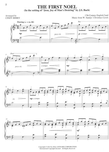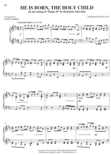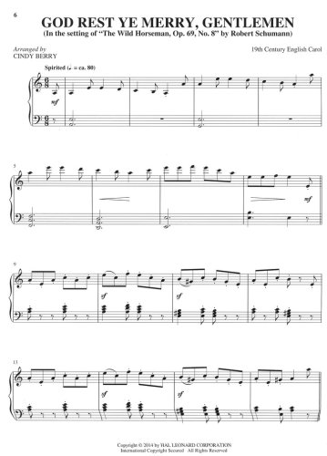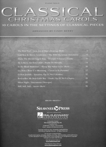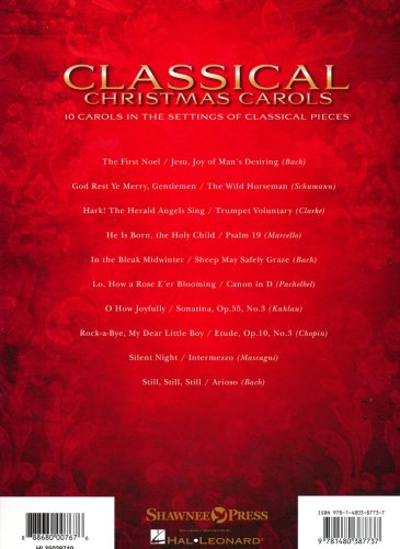 (Shawnee Press). 10 beloved carols artfully arranged in the settings of well-known classical pieces. Excellent material for church services, recitals, or personal enjoyment. Titles include: The First Noel/Jesu, Joy of Man's Desiring (Bach) * God Rest Ye Merry, Gentlemen/The Wild Horseman (Schumann) * Hark The Herald Angels Sing/Trumpet Voluntary (Clarke) * He Is Born/Psalm 19 (Marcello) * In the Bleak Midwinter/Sheep May Safely Graze (Bach) * Lo, How a Rose E'er Blooming/Canon in D (Pachelbel) * O How Joyfully/Sonatina, Op.55, No.3 (Kuhlau) * Rock-a-Bye, My Dear Little Boy/Etude, Op.10, No.3 (Chopin) * Silent Night/Intermezzo (Mascagni) * Still, Still, Still/Arioso (Bach). Intermediate Level.