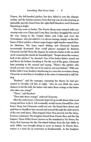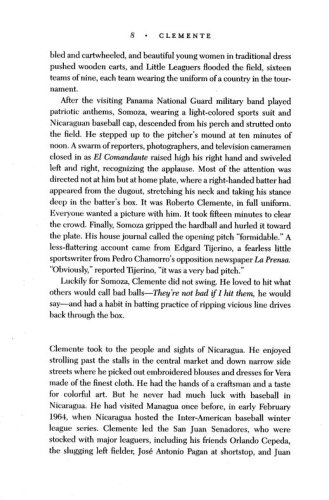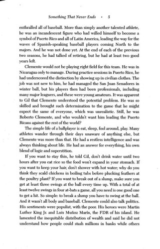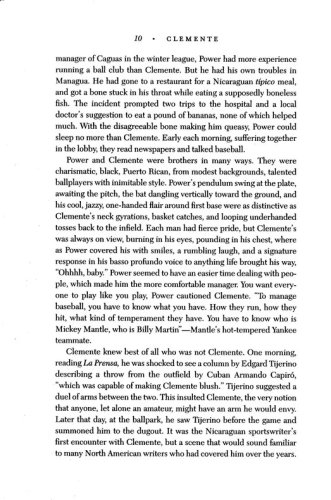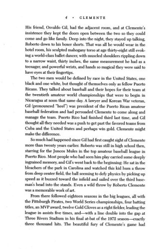 There is delightful baseball here, including thrilling accounts of the two World Series victories of Clemente’s underdog Pittsburgh Pirates, but this is far more than just another baseball book. Roberto Clemente was that rare athlete who rose above sports to become a symbol of larger themes. Born near the canebrakes of rural Carolina, Puerto Rico, on August 18, 1934, at a time when there were no blacks or Puerto Ricans playing organized ball in the United States, Clemente went on to become the greatest Latino player in the major leagues. He was, in a sense, the Jackie Robinson of the Spanish-speaking world, a ballplayer of determination, grace, and dignity who paved the way and set the highest standard for waves of Latino players who followed in later generations and who now dominate the game.