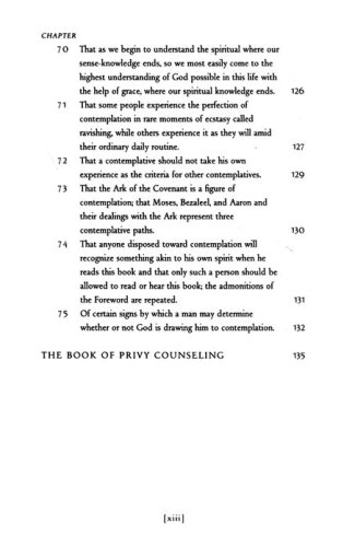 William Johnston–an authority on fourteenth century spirituality and specifically on the writings of this unknown author–provides a substantive and accessible introduction detailing what is known about the history of this text and its relevance throughout the ages. Also included here is the author's other principal work, The Book of Privy Counseling–a short and moving text on the way to enlightenment through a total loss of self and consciousness only of the divine.