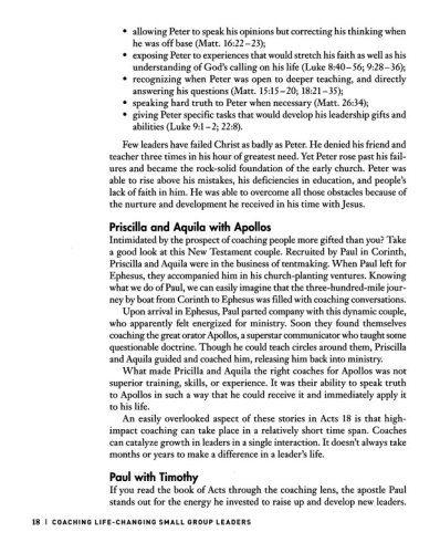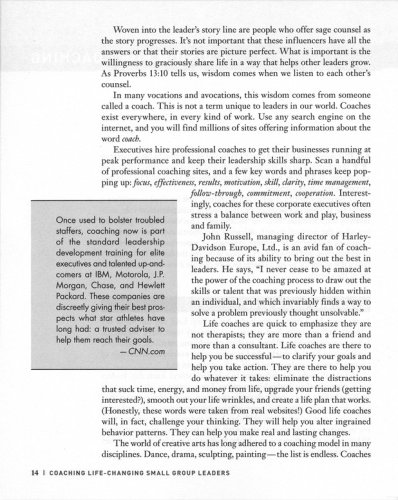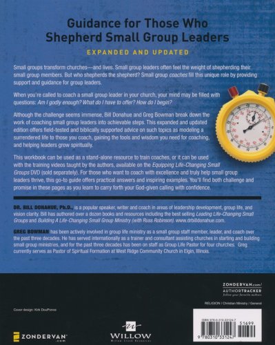 Small groups transform churches—and lives. Small group leaders often feel the weight of shepherding their small group members. But who shepherds the shepherd? Small group coaches fill a unique role by providing support and guidance for group leaders. When you’re called to coach a small group leader in your church, your mind may be filled with questions: Am I godly enough? What do I have to offer? How do I begin? Although the challenge seems immense, Bill Donahue and Greg Bowman break down the work of coaching small group leaders into achievable steps. This expanded and updated edition offers field-tested and biblically supported advice on such topics as modeling a surrendered life to those you coach, gaining the tools and wisdom you need for coaching, and helping leaders grow spiritually. This workbook can be used as a stand-alone resource to train coaches, or it can be used with the training videos taught by the authors, available on the Equipping Life-Changing Small Groups DVD (sold separately). For those who want to coach with excellence and truly help small group leaders thrive, this go-to guide offers practical answers and inspiring examples. You’ll find both challenge and promise in these pages as you learn to carry forth your God-given calling with confidence.