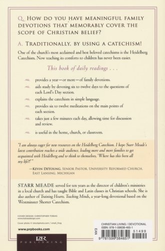 Starr Meade enables families with school-age children to participate in satisfying devotions together by taking them through The Heidelberg Catechism—explaining its answers in short devotional readings accompanied by relevant Bible passages.