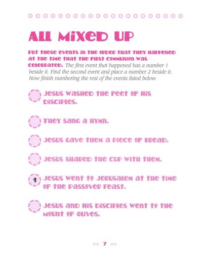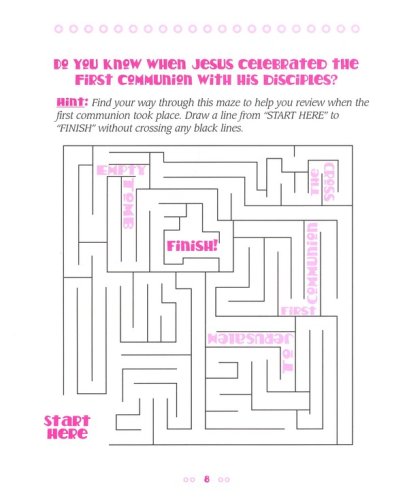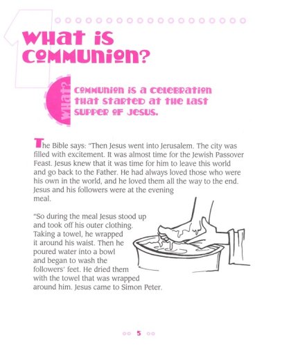 The book illustrates the history of communion, how it is done, and why. It also explains when a child may go to communion: when their spiritual maturity has reached a point when the experience of communion can be fully appreciated. Activities include a maze, hidden bread and cup activity, coloring page, and secret message.