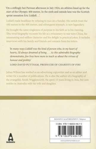 Eric Liddell, the Scottish 400m Olympic Champion from the 1924 Olympic Games in Paris was immortalised in the Oscar winning film Chariots of Fire. His story however goes far beyond the restrictions of a two hour movie that in any case was not entirely accurate with the truth of the detail of Liddell's extraordinary but tragically short life. Julian Wilson's vivid biography recounts not only the highs and lows of his athletics career including his controversial decision never to run on a Sunday, but also his life after the Olympics as a missionary in war torn China. It was here that is unassuming and selfless character won him many friends despite the severity of the conditions he had to endure toward the end of his life.