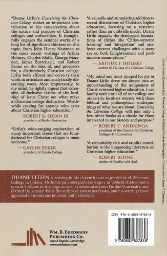 This book is designed to help those who are interested in Christian higher education explore anew the unique features, opportunities, and contemporary challenges of one distinct type of educational institution – the Christian college. What distinguishes Conceiving the Christian College from the many other books on this subject is its incisive discussion of a set of crucial ideas widely misunderstood in the world of Christian higher education. Now serving in his eleventh year as president of one of the nation's foremost Christian colleges, Duane Litfin is well placed to ask pressing questions regarding faith-based education. What is unique about Christian colleges? What is required to sustain them? How do they maintain their bearing in the tumultuous intellectual seas of the twenty-first century? Litfin's themes are large, but they are meant to refocus the conceptual challenges to Christian education in ways that will strengthen both the academic environment of today's Christian colleges and their impact on culture at large.