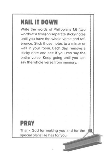 God has a blueprint for your life, and it's time to put your tools to work! Each of these 100 devotions offers Scriptures, prayer prompts, "Nail It Down" action steps, and "Personal Blueprint" activities that will help you build on the love of Jesus.