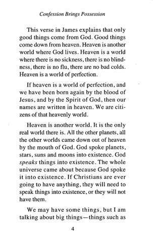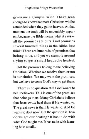 All the promises of God belong to the believing Christian. Whether we receive them or not is our choice. Learn how to affirm the Word of God in your heart and release God's power through faith-fulled words. Confession Brings Possession is a powerful booklet that will give you insight into how to release the power of God in your life.