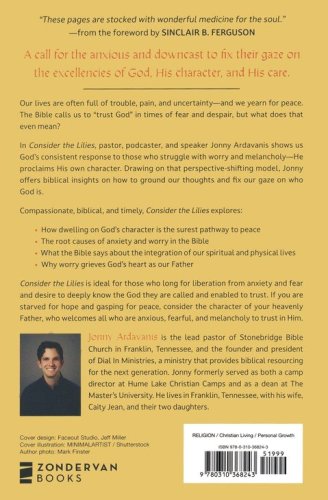In Consider the Lilies, pastor, podcaster, and speaker Jonny Ardavanis shows us God's consistent response to those who are worn down by worry and badgered by melancholy: He proclaims His own character. Drawing on that perspective-shifting model, Jonny offers biblical insight on how to ground our thoughts and fix our gaze on who God is.