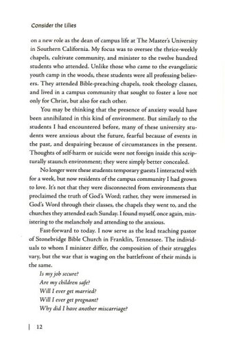 Consider the Lilies is for those who long for liberation from their anxiety and fear–and desire to deeply know the God they are called and enabled to trust. If you are starved for hope and gasping for peace, consider the character of your heavenly Father, who welcomes all who are anxious, fearful, and melancholy to trust in Him.