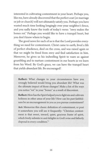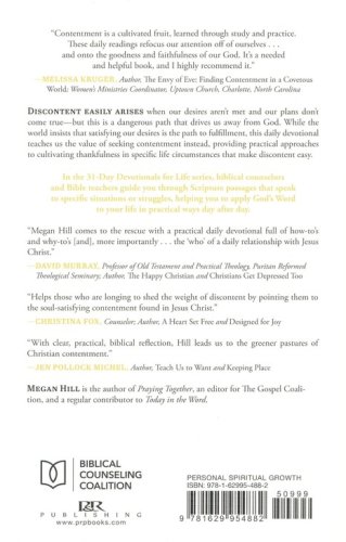 “If I could just have a little more . . . if my situation were just a little different! My plan for my life would be perfect—if it would just come true!” It is often obvious how little we are in control of our lives, and discontent seems like a natural response to not getting what we want. But it’s a dangerous attitude that drives us away from God—and, ironically, getting what we want wouldn’t fix it! So what will? Megan Hill takes us on a month-long journey to lift our eyes from our own expectations for our lives and fix them on the God who is more reliable than our changing circumstances—and who ordains them for our good. This daily devotional teaches us the value of contentment, helps us to cultivate a thankful heart, and provides immensely practical approaches for pursuing contentment in specific types of circumstances that trigger our worry and anxiety.