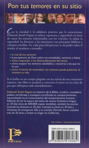 Deborah Smith Pegues, especializada en comportamiento y autora de éxitos de ventas como Controla Tu Lengua en 30 Días (más de 500.000 ejemplares vendidos), arroja luz sobre los miedos racionales e irracionales y ofrece a los lectores un camino de esperanza y seguridad. Con la claridad y la sabiduría práctica que le caracterizan, Deborah Smith Pegues te ofrece esperanza y seguridad a la hora de tratar los temores relativos a las relaciones, la salud, la seguridad, las finanzas y las emociones con unos principios bíblicos y una ayuda práctica.