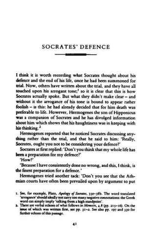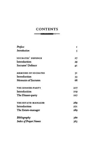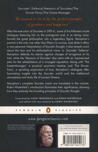 After the execution of Socrates in 399 BC, a number of his followers wrote dialogues featuring him as the protagonist and, in so doing, transformed the great philosopher into a legendary figure. Xenophon's portrait is the only one other than Plato's to survive, and while it offers a very personal interpretation of Socratic thought, it also reveals much about the man and his philosophical views. In 'Socrates' Defence' Xenophon defends his mentor against charges of arrogance made at his trial, while the 'Memoirs of Socrates' also starts with an impassioned plea for the rehabilitation of a wronged reputation. Along with 'The Estate-Manager', a practical economic treatise, and 'The Dinner-Party', a sparkling exploration of love, Xenophon's dialogues offer fascinating insights into the Socratic world and into the intellectual atmosphere and daily life of ancient Greece.