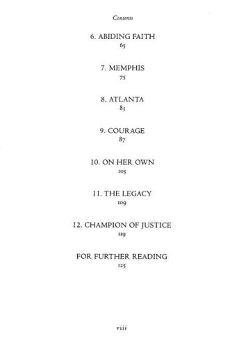 In this first biography of Coretta Scott King, writtenby her friend Octavia Vivian, the reader meets adetermined young girl who grew up in Alabama andworked her way through Antioch College only to discoverthat she was not allowed to teach in the white schools inOhio. She pursued a musical career in Boston, where shemet Martin Luther King, Jr.