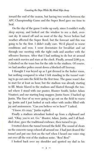 Counting the Days While My Mind Slips Away chronicles his remarkable journey from his early days throwing a football back and forth with his father to speaking about the long-term effects of concussions before Congress, and how his faith keeps him strong and grounded as he looks toward an uncertain future. Ben recounts the experiences that have shaped his life and imparts the lessons he’s learned along the way. Emotionally powerful, inspiring, and uplifting, Ben’s story will captivate and encourage you to make the most of every day and treasure all of your memories.