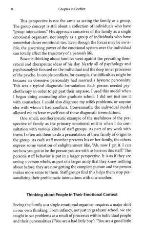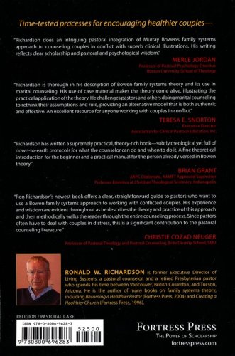 Perhaps no single issue is of greater importance for families in Western culture than the one of marital conflict. When couples fail to successfully negotiate the emotional difficulties of their relationship, it can lead either to years of unhappiness within the marriage or to the breakdown of the marriage and to divorce. Unhappy couples negatively affect their families and even their communities. Couples in Conflict describes the nature of the emotional process leading to marital difficulties and how a minister or counselor can be a resource to help couples in conflict. The minister/counselor will be able to help them improve their lives personally, as well as their relationship and family life. By extension, couples will also develop skills that will improve their work life and their life in the community. The book provides practical and specific approaches to helping these couples and the issues that a minister must deal with in order to be useful to them.