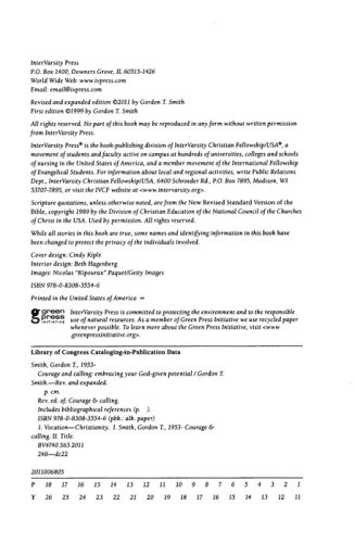 Smith addresses these questions and many more in the pages of this book. This new edition has been revised and updated throughout with two expanded chapters and a new chapter on four specific areas of calling. Here is rich insight for all who long for the ears to hear and the courage to follow God's call.