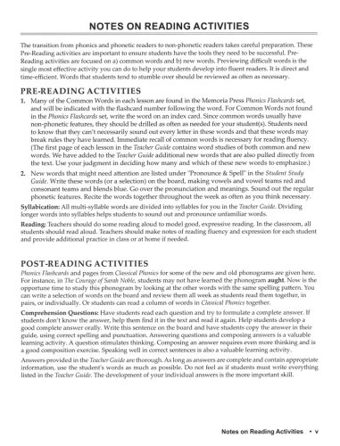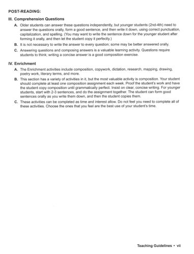 This teacher's guide accompanies Memoria Press' sold-separately The Courage of Sarah Noble. The student book is reproduced here with the correct answers inserted; discussion question answers are listed separately. Quizzes cover multiple chapters and include vocabulary, comprehension multiple choice, and short answer questions. A final exam is also included. The answers for the vocabulary tests & exam are overlaid on reproduced forms. 39 pages, softcover. Grade 2.