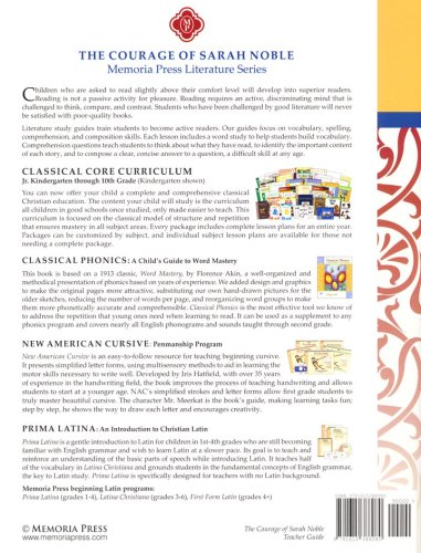 Courage of Sarah Noble Memoria Press Teacher Guide