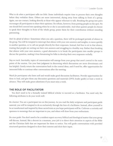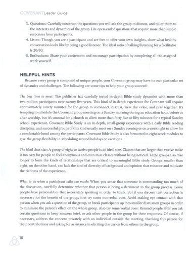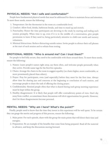 The Leader Guide contains comprehensive and detailed direction for the group leader to use in each 90- minute group experience. Direction is provided for each component of the group meeting with options that allow leaders to adapt to the group's unique characteristics. Components of the group meeting experience include: