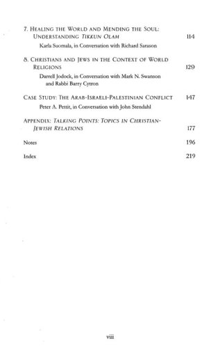 Eight topics or talking points get special attention from the chief contributors and their dialogue partners: