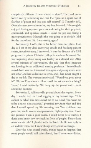 Have you ever wondered: "What are my gifts? What exactly is God calling me to do with my life?" Although the profession of nursing has the ability to provide a comfortable income, it's more than salary. Eternal rewards are reflected when a nurse aids in the alleviation of a patient's pain, leads a dying patient in a prayer of salvation, or has the opportunity to assist in the welcoming of a new life into this world.