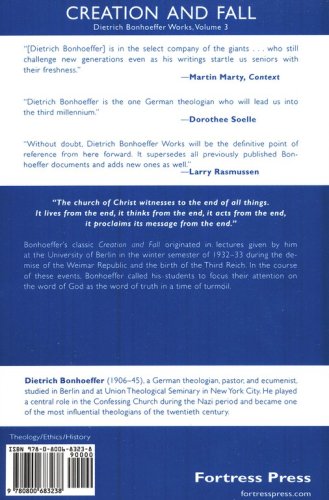 Creation and Fall originated in lectures given by Dietrich Bonhoeffer at the University of Berlin in the winter semester of 193233 during the demise of the Weimar Republic and the birth of the Third Reich. In the course of these events, Bonhoeffer called his students to focus their attention on the word of God the word of truth in a time of turmoil.