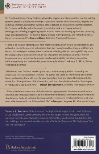 Earthquakes, floods, tsunamis, and hurricanes have plagued the history of the earth. What is God's role in natural disasters and the human suffering they cause? This is one of the most vexing questions in Christian life and theology. Terence Fretheim offers fresh readings of familiar Old Testament passages–such as creation, the flood, and the suffering of Job–to give readers biblical resources for working through this topic. He shows the God of the Bible to be a compassionate, suffering, relational God, one we can turn to in prayer in times of disaster.