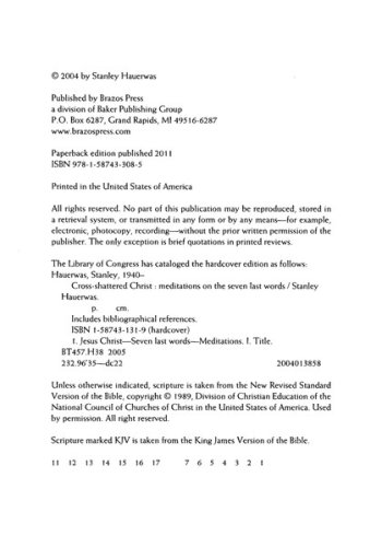 In this small but powerful book, renowned theologian Stanley Hauerwas offers a moving reflection on Jesus's final words from the cross. Touching in original and surprising ways on subjects such as praying the Psalms and our need to be remembered by Jesus, Hauerwas emphasizes Christ's humanity as well as the sheer "differentness" of God. Ideal for personal devotion during Lent and throughout the church year, this book offers a transformative reading of Jesus's words that goes directly to the heart of the gospel. Now in paperback.