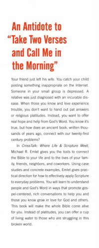 others needed a tool to help bridge the gap between biblical text and contemporary life, Emlet has penned CrossTalk: Where Life & Scripture Meet (November 2009, New Growth Press). Emlets new volume is designed to help pastors and lay Christians who disciple, mentor, and counsel within their circle of influence. Ultimately the book targets all Christians who are serious