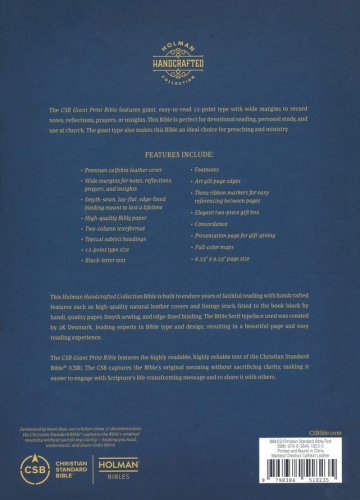 The CSB Giant Print Bible features the highly readable, highly reliable text of the Christian Standard Bible® (CSB). The CSB captures the Bible’s original meaning without sacrificing clarity, making it easier to engage with Scripture’s life-transforming message and to share it with others.