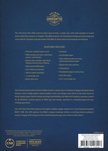 The CSB Giant Print Bible features the highly readable, highly reliable text of the Christian Standard Bible® (CSB). The CSB captures the Bible’s original meaning without sacrificing clarity, making it easier to engage with Scripture’s life-transforming message and to share it with others.