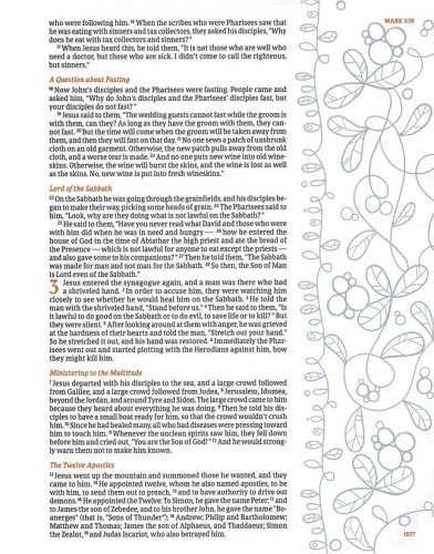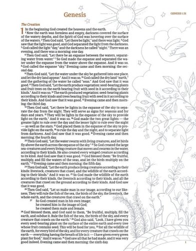 Over 600 line-art illustrations, including filigree, text, and other Scripture art  Wide, two-inch lined margins for journaling and notetaking   Durable Smyth-sewn, lay-flat binding   Single-column text format   Topical subject headings   Large, easy-to-read 9.5-point type size   Black-letter text   Two ribbon markers for easy referencing between pages    Concordance   One-year Bible reading plan   Presentation page for gift-giving   Full-color maps   7.25" x 9.375" page size
