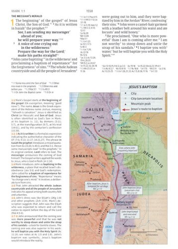 368 word studies to introduce you to the context and meaning behind key Greek and Hebrew wordsHigh-quality smyth-sewn binding that will lie open whether you are reading Genesis 1 or Revelation 22Full-color visuals to help you see the structure and context of Scripture come alive, including 94 photographs, 55 maps, 44 paintings, 21 illustrations/reconstructions, 19 charts, and 61 timelinesIntroductions and outlines for each book, including background information, theological themes, and insights into the unique contribution of each bookEasy-to-read layout with two columns of text, center-column cross-references, and three columns of notes