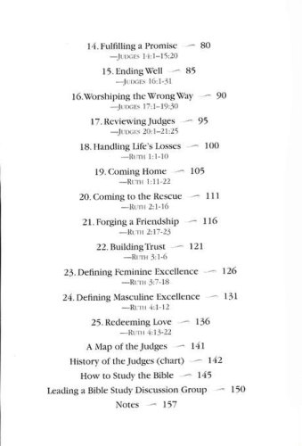 In the midst of the dark days of the Judges, God faithfully raised up men and women of character to lead his people. Journey through Judges and Ruth and marvel at the godly character of women such as Deborah, Jephthah's daughter, Samson's mother, Naomi, and Ruth—God's woman of excellence. Women seeking God's heart are encouraged to: