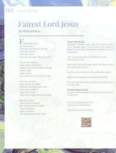 This easy-to-navigate curriculum embraces master painters, poetry, classical music, folk songs, classic hymns, nature study, watercolor tutorials, handicrafts, art projects, and more.