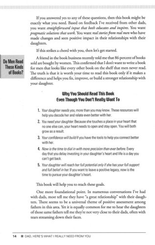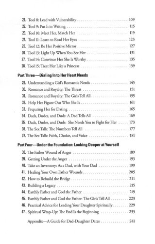 walk in God’s vision for fatherhoodlearn to speak your daughter’s love language understand your daughter’s needs, wants, longings, and passionsbridge resistance and distance that emerges between dads and daughtershone tools to mend a broken home or heart and heal the past