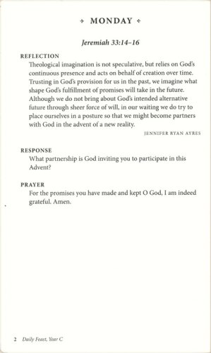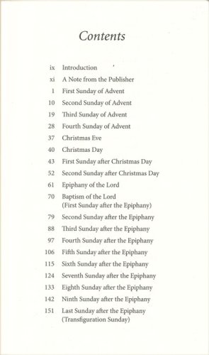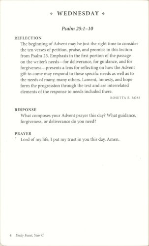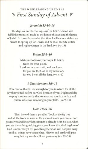 Each day of the week contains Scripture passages for the coming Sunday from the Revised Common Lectionary, excerpts from the commentaries for reflection, a response, and a prayer. Additional material is provided for each Sunday.