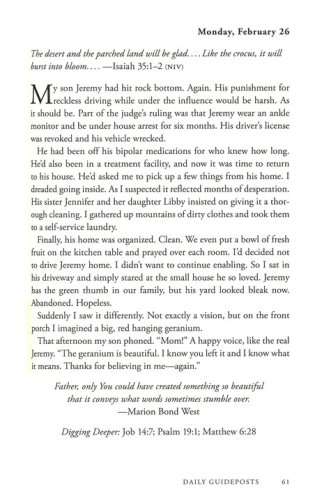 Enjoy favorite writers like Debbie Macomber, Edward Grinnan, Elizabeth Sherrill, Patricia Lorenz, Julia Attaway, Karen Barber, Sabra Ciancanelli, Marion Bond West, Brian Doyle, and Rick Hamlin.