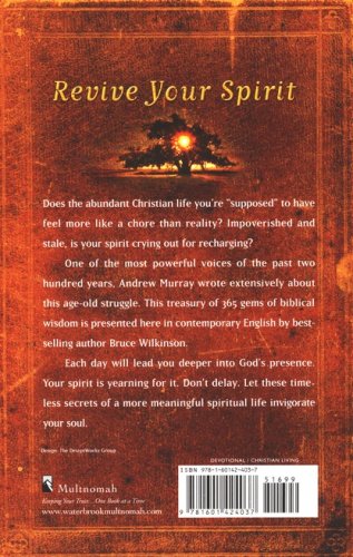 One of the most powerful voices of the past two hundred years, Andrew Murray wrote extensively about this age-old struggle. This treasury of 365 gems of biblical wisdom is presented here in contemporary English by best-selling author Bruce Wilkinson.