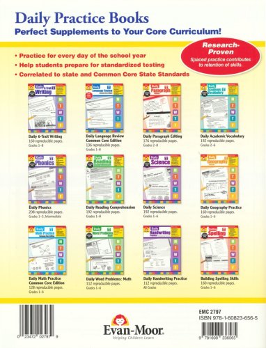 Keep language skills sharp with focused practice! With Evan-Moor's Daily Language Review, students practice language skills covering punctuation, verb tense, conjunctions, word meaning, and more in ten- to fifteen-minute daily lessons; five questions are provided for every day of a 36-week school year.