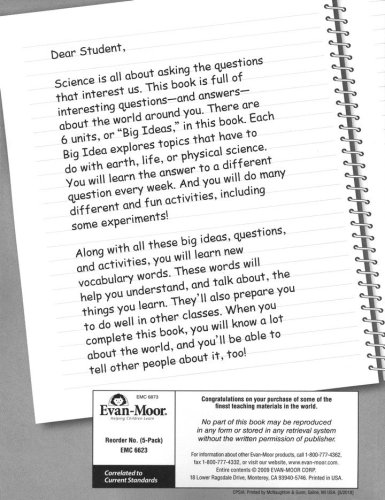 Provide students the convenience of their own workbook with Daily Science, Student Workbook, Grade 3 from Evan-Moor. This student edition corresponds to the sold separately Daily Science, Teacher Edition, Grade 3. Included are the student activity pages only, (no answer key) and is NOT reproducible. Softcover.